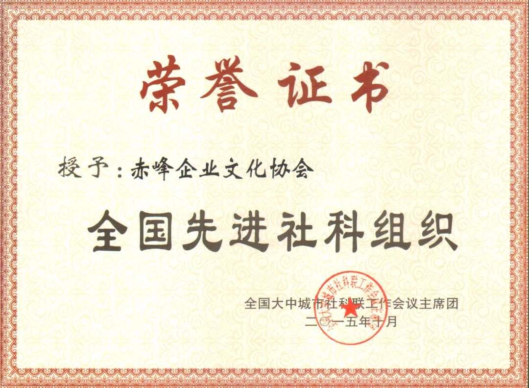 赤峰企業文化協會榮獲內蒙古自治區民政廳“全區先進社會組織”榮譽稱號